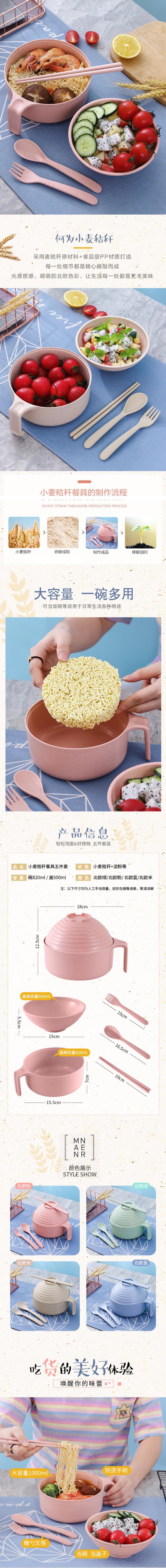 小麦秸秆泡面碗配餐具五件套泡面碗带盖餐具大容量饭碗